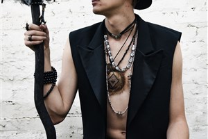 кофта с накидкой черная, брюки черные, корона